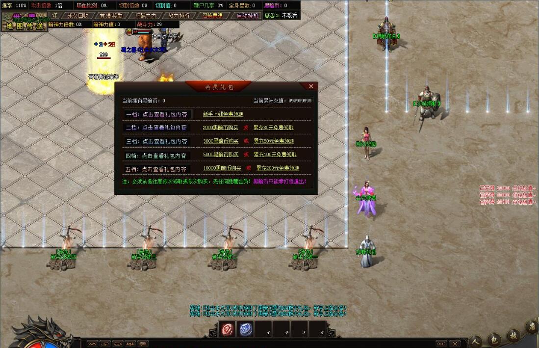 - 二级会员(累充30元宝或黑暗币购买):激活隐身戒指等大量福利!