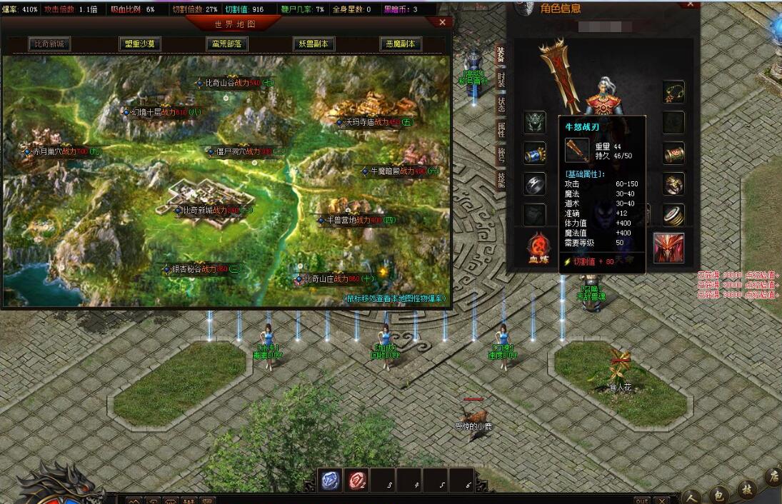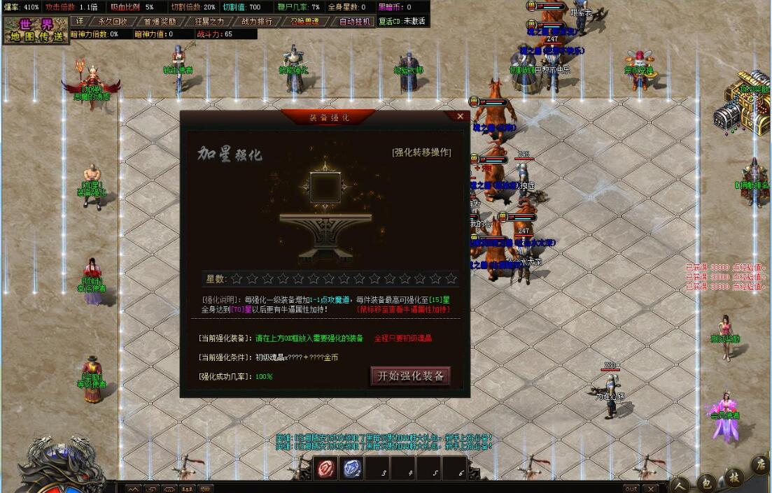 - 沙城捐献(30大米充值):切割、爆率、自动挂机、前期唯一吸血+5%、可根据阶段兽魂召唤切割宝宝,打boss必备!