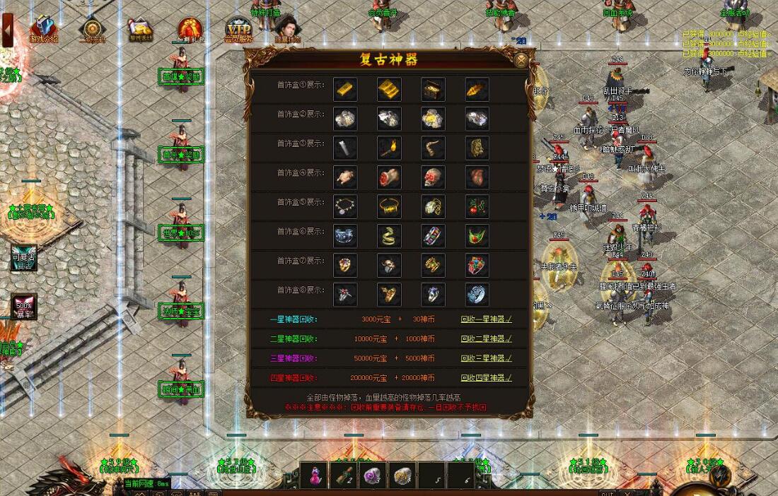本服还原干净聊天框,无垃圾信息及回收提示,商铺不售材料全靠打怪,永久回收物品均由怪物爆出。游戏问题可QQ群联系客服完美解答,无论是否消费均用心服务,所有玩家公平对待。交易安全需通过商铺RMB点交易,提现手续费仅10%;私下交易一经查实封号并清除提现记录;禁止自动刷屏、骂人小号占安全区,违者警告或封号;严禁加速脱机外挂,发现必删永不解封。