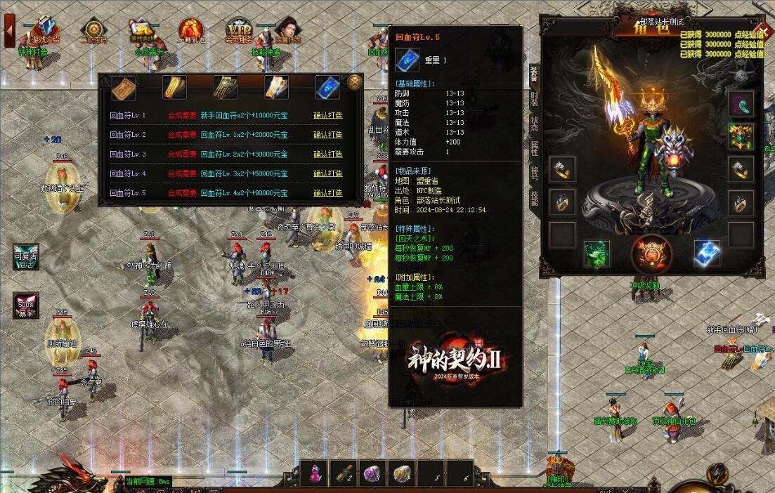 上线自动送挂机、自动回收、自动捡取、+100%爆率