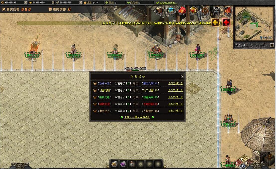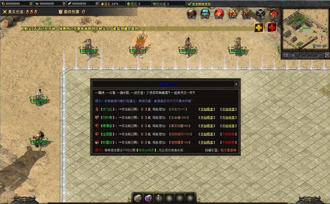 传奇游戏最新版本更新:新增智能挂机系统(入口位于综合服务内),优化所有怪物爆率(专属与材料爆率大幅提升),新增三个不爆物品,同步上线手写攻略(建议配合查询系统游玩,游戏难度适中)。增加元宝获取途径(杀怪即可获得元宝,适配后期高消耗需求),新增两个背包神器,调整金币获取规则(不同赞助等级对应不同获取量),金币回收倍率与赞助等级挂钩。修复3个剧情地图因不刷怪导致的中断问题,解决强化框不显示无法强化的故障,优化杀怪点变量及称号领取条件(一晚上可领完)。整理土城NPC布局(删除无用NPC,界面更整洁),新增GM可控真假爆率系统,优化人物初始攻速(非无限刀)。完成多处剧情地图问题修复与优化:赤沙龙城材料调整;剧情二四个NPC货币消耗、材料及概率优化(适配周服节奏);剧情三老者/尊者材料数量与成功率优化、老马猴/卖酒老头/定海神针合成修改、震天凯/穿针引线合成问题修复;云顶天宫进图条件调整,难度适当降低。
