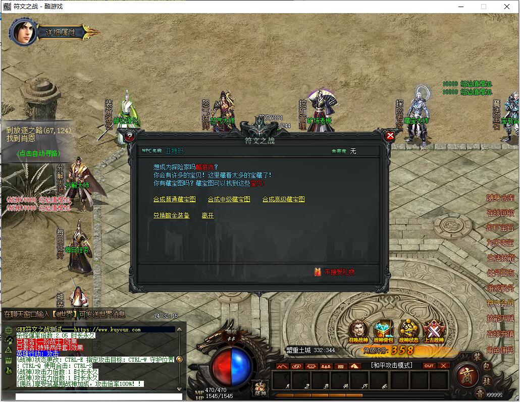 传奇游戏最新版本更新:新增智能挂机系统(入口位于综合服务内),优化所有怪物爆率(专属与材料爆率大幅提升),新增三个不爆物品,同步上线手写攻略(建议配合查询系统游玩,游戏难度适中)。增加元宝获取途径(杀怪即可获得元宝,适配后期高消耗需求),新增两个背包神器,调整金币获取规则(不同赞助等级对应不同获取量),金币回收倍率与赞助等级挂钩。修复3个剧情地图因不刷怪导致的中断问题,解决强化框不显示无法强化的故障,优化杀怪点变量及称号领取条件(一晚上可领完)。整理土城NPC布局(删除无用NPC,界面更整洁),新增GM可控真假爆率系统,优化人物初始攻速(非无限刀)。完成多处剧情地图问题修复与优化:赤沙龙城材料调整;剧情二四个NPC货币消耗、材料及概率优化(适配周服节奏);剧情三老者/尊者材料数量与成功率优化、老马猴/卖酒老头/定海神针合成修改、震天凯/穿针引线合成问题修复;云顶天宫进图条件调整,难度适当降低。
