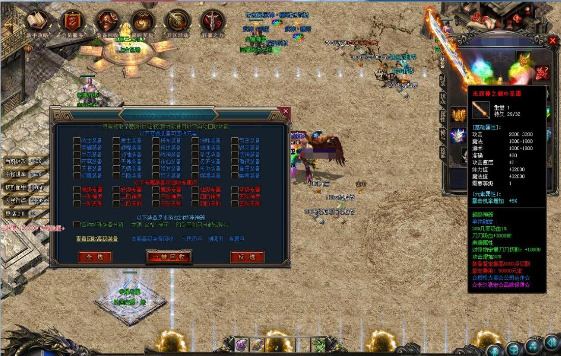 拥有初级装备后前往土城下方的地图击杀高级怪物以获取高级装备。每个专属地图里面都有两个隐藏地图,其中包含着千种专属装备。虽然小怪也会掉落装备, 但爆率很低,因此建议蹲守BOSS点和参加副本·世界BOSS活动,以获得更高的爆率。