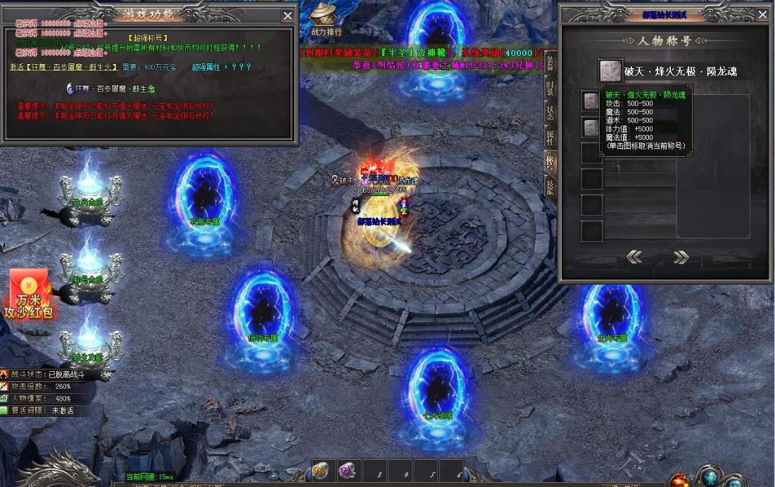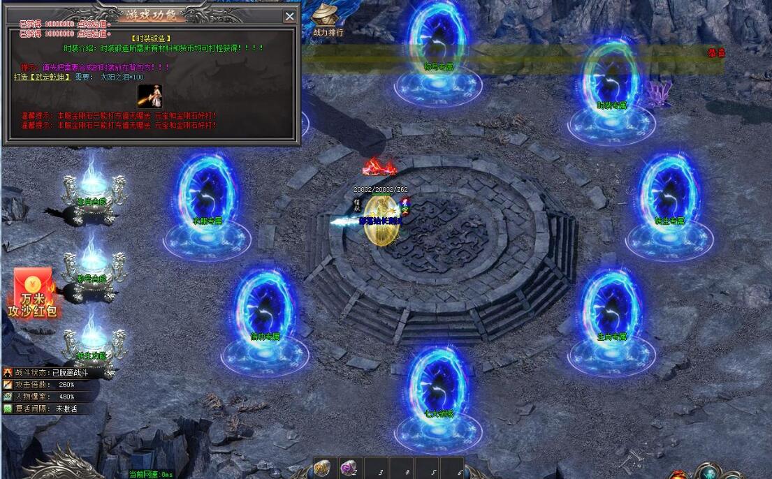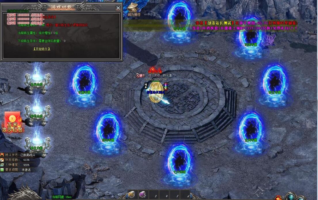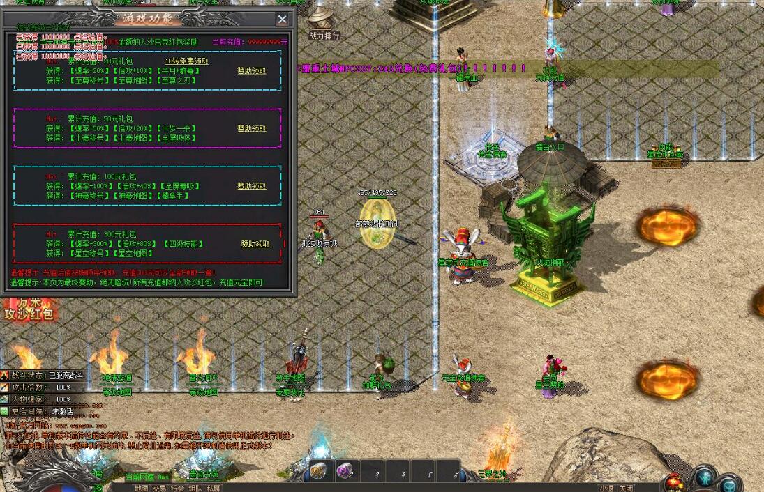 土豪玩家可以充值1000元,共计获得1亿元宝,可将转生点到20转猛的一塌糊涂。