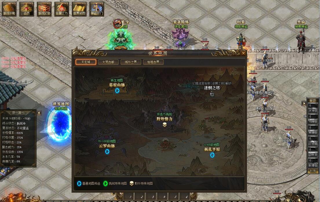 天玄城的野外势力爆出各种专属武器衣服项链 头盔 都会针对性的大度图提升各种属性