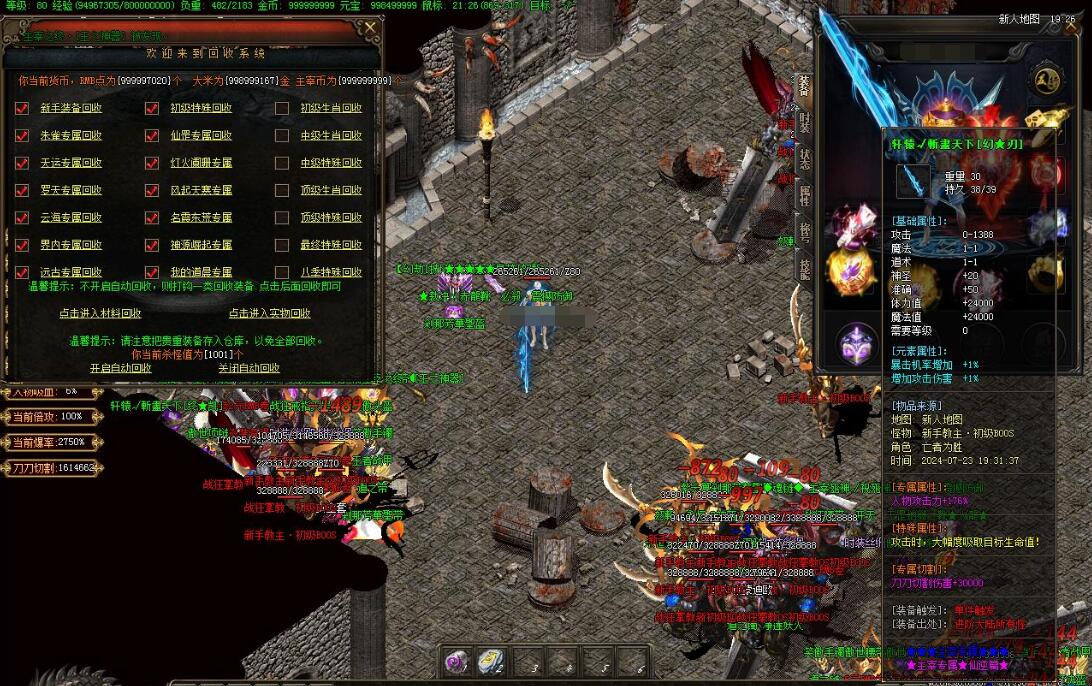 - 本服主要物品:时装,转生材料,RMB点,散人打到一把好武器直接起飞。