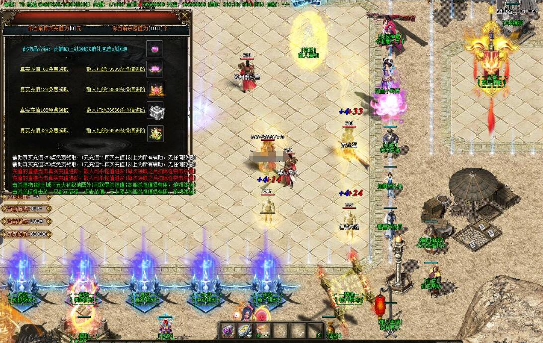 - 充值400大米=40元,开沙城捐献+狂暴,切割到4W,打点东西进沙捐地图。