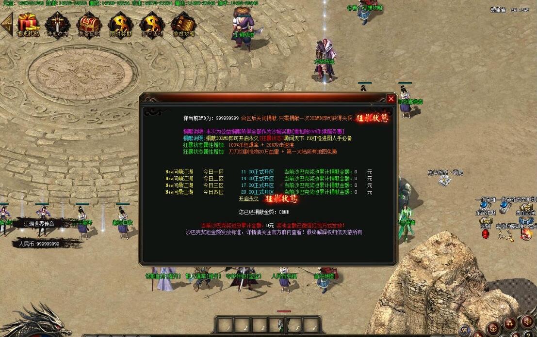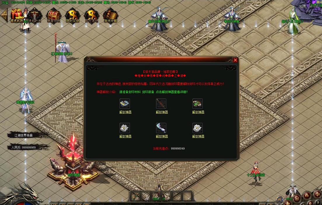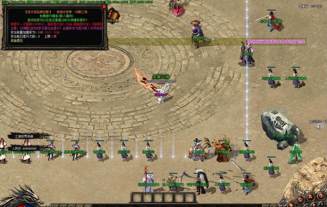 全民火龙单职业微变版本,纯散人服不花钱也可终极,一切靠打无合成,散人打金地图多怪物刷新速度快,装备货币保值,每日人品大爆发轻松300+收入。每天稳定四区开放(10:30 14:30 18:30 22:30),每个地图终极福利BOSS每晚22:01刷新,首区攻沙奖励RMB 588无封顶。市场最强封挂系统24小时接受举报,提醒设置二级密码防扫号。适度游戏益脑,拒绝盗版,享受健康生活。