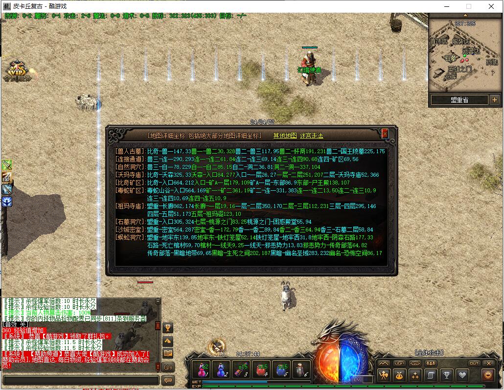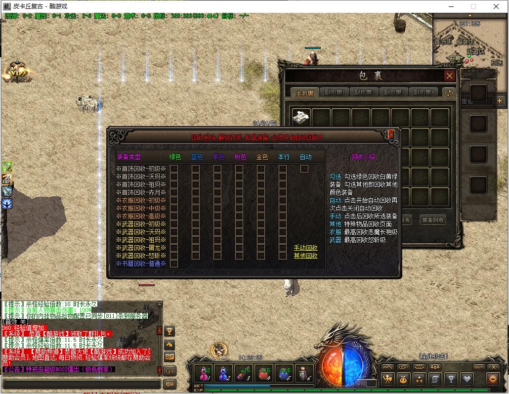 传奇游戏最新版本更新:新增智能挂机系统(入口位于综合服务内),优化所有怪物爆率(专属与材料爆率大幅提升),新增三个不爆物品,同步上线手写攻略(建议配合查询系统游玩,游戏难度适中)。增加元宝获取途径(杀怪即可获得元宝,适配后期高消耗需求),新增两个背包神器,调整金币获取规则(不同赞助等级对应不同获取量),金币回收倍率与赞助等级挂钩。修复3个剧情地图因不刷怪导致的中断问题,解决强化框不显示无法强化的故障,优化杀怪点变量及称号领取条件(一晚上可领完)。整理土城NPC布局(删除无用NPC,界面更整洁),新增GM可控真假爆率系统,优化人物初始攻速(非无限刀)。完成多处剧情地图问题修复与优化:赤沙龙城材料调整;剧情二四个NPC货币消耗、材料及概率优化(适配周服节奏);剧情三老者/尊者材料数量与成功率优化、老马猴/卖酒老头/定海神针合成修改、震天凯/穿针引线合成问题修复;云顶天宫进图条件调整,难度适当降低。