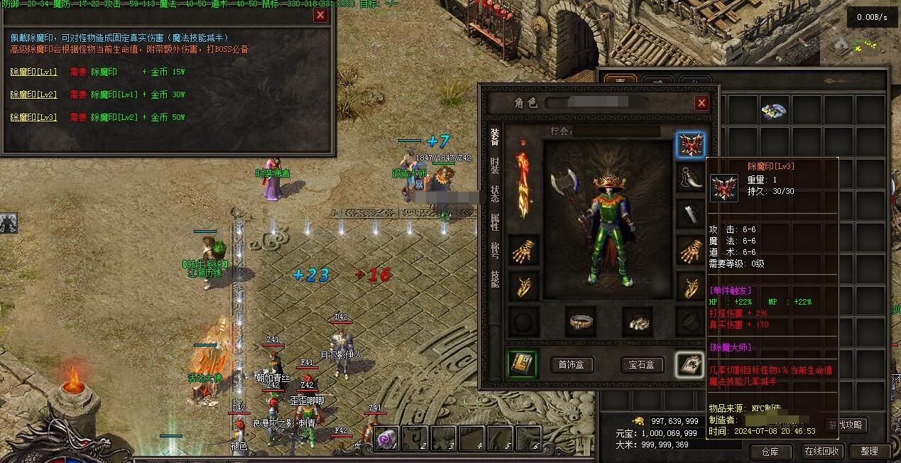 小提示:道士宝宝附带人物1.2倍属性,且攻击附带除魔印的真实伤害(CTRL+R锁定怪物人物)。