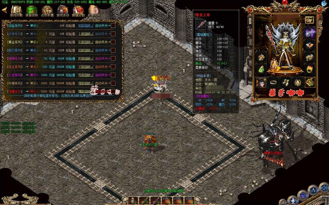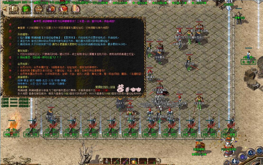 本服还原干净聊天框,无垃圾信息及回收提示,商铺不售材料全靠打怪,永久回收物品均由怪物爆出。游戏问题可QQ群联系客服完美解答,无论是否消费均用心服务,所有玩家公平对待。交易安全需通过商铺RMB点交易,提现手续费仅10%;私下交易一经查实封号并清除提现记录;禁止自动刷屏、骂人小号占安全区,违者警告或封号;严禁加速脱机外挂,发现必删永不解封。