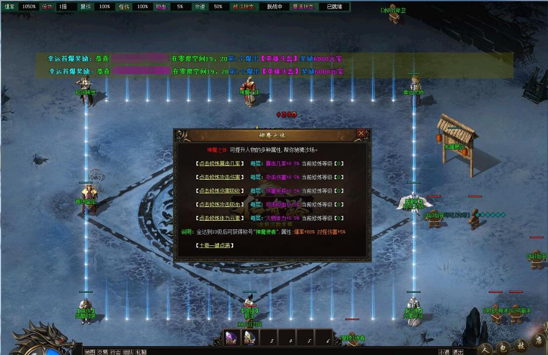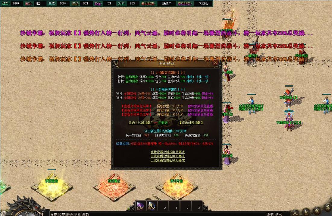 - 土豪:453元档(310元宝+143大米)→ 赞助会员 + 狂暴之力 + 沙捐榜一 + 2大陆称号大师(2400个传奇之星) + 攻速斧头MAX(2大陆提升) + 神魔 + 减伤时装(抗怪必备)