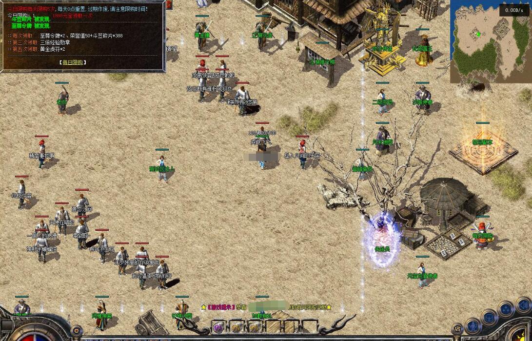 土城药店每3小时刷新一只神之万年树妖和送宝使者,要超级祝福油的不要错过机会哦!祖玛装备和赤月装备可换元宝或大量经验,经典耐玩的1.76至尊传奇!元宝比例1:150,点卡充值多送80%,网银充值多送100%!