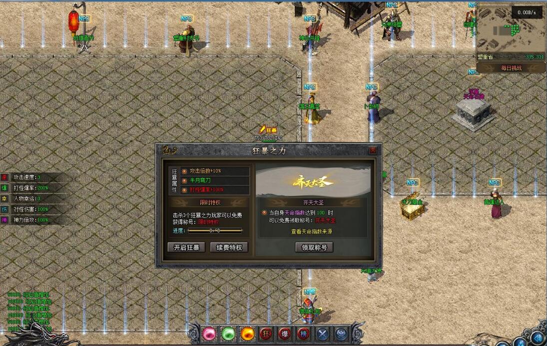 有条件的RMB玩家可以升级称号,称号拥有专属地图,多倍爆率,牛逼属性