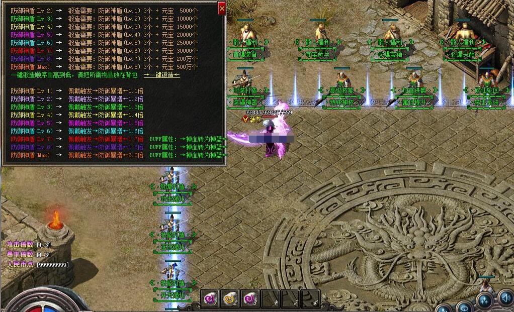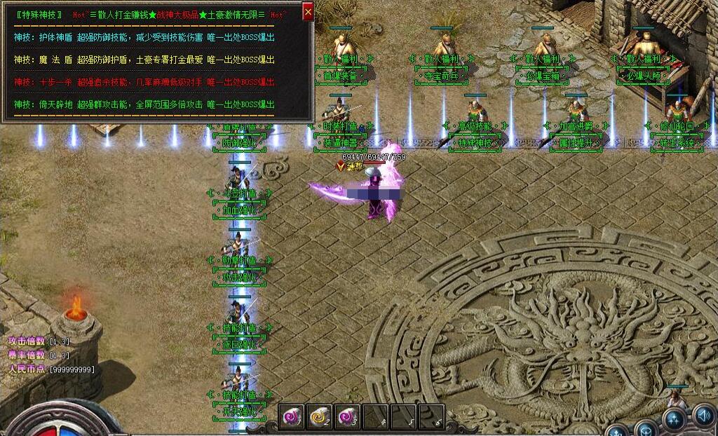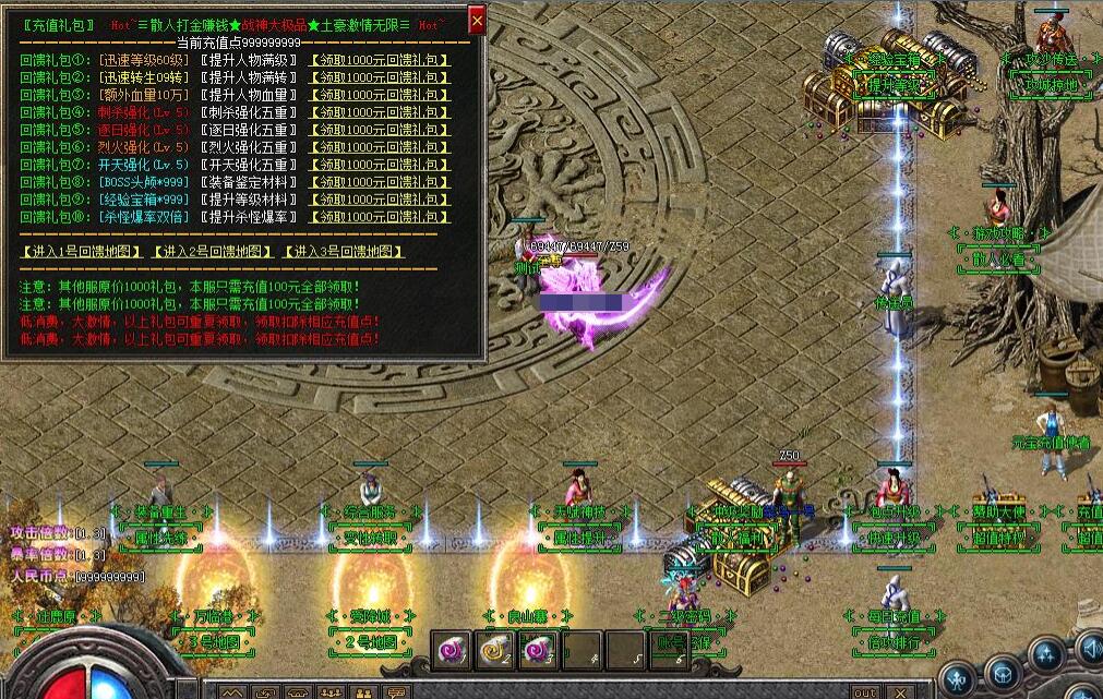 - 本服为战神大极品,融合了霸者、风云、狂风、完美等版本玩法!
