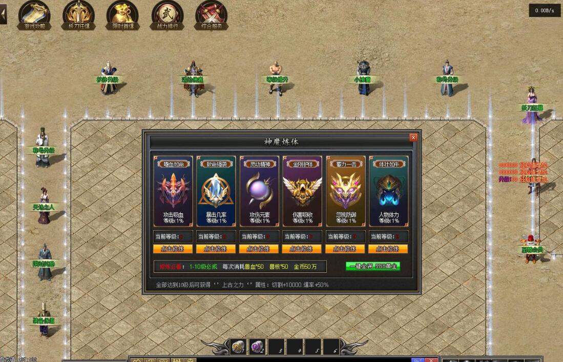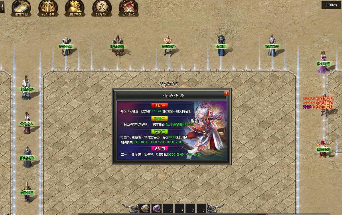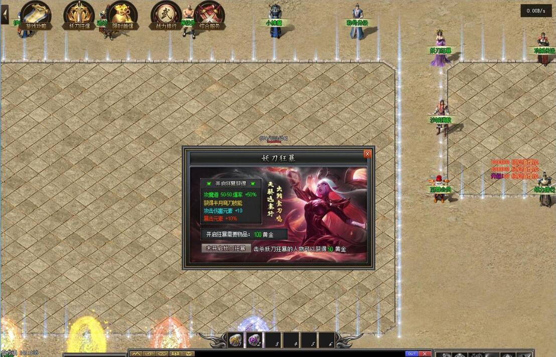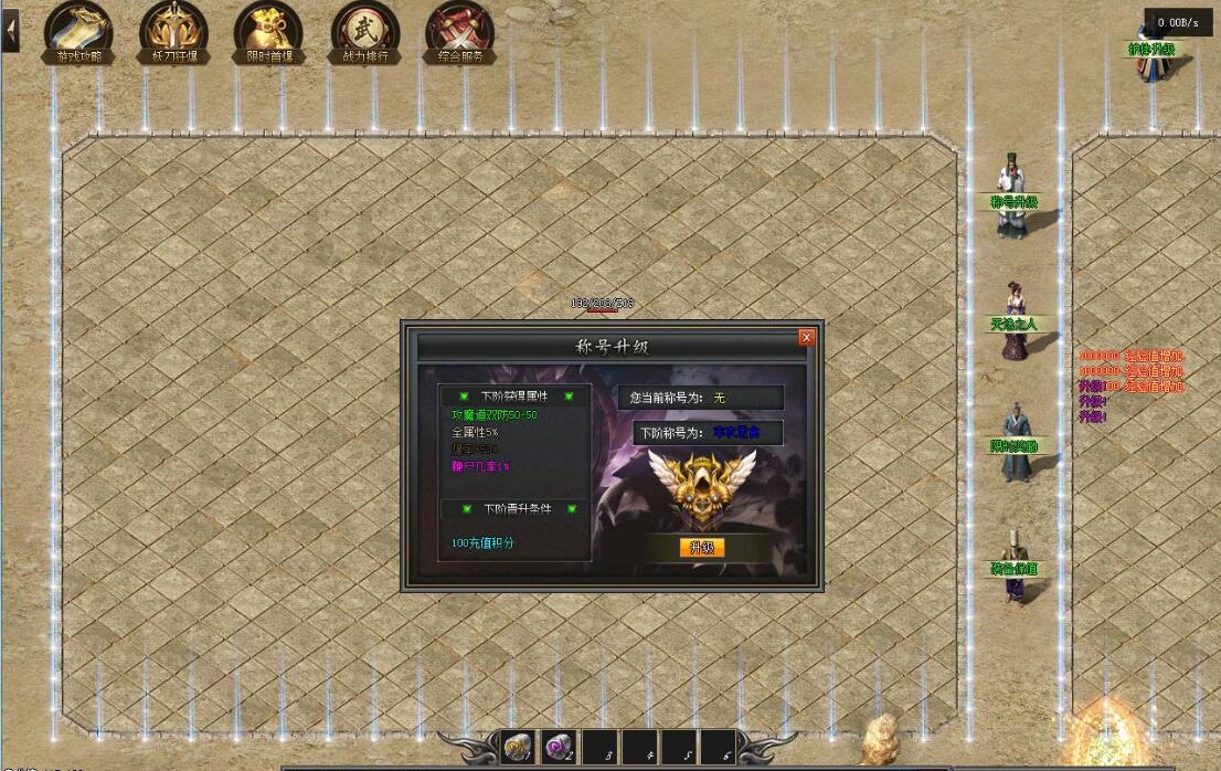 传奇游戏最新版本更新:新增智能挂机系统(入口位于综合服务内),优化所有怪物爆率(专属与材料爆率大幅提升),新增三个不爆物品,同步上线手写攻略(建议配合查询系统游玩,游戏难度适中)。增加元宝获取途径(杀怪即可获得元宝,适配后期高消耗需求),新增两个背包神器,调整金币获取规则(不同赞助等级对应不同获取量),金币回收倍率与赞助等级挂钩。修复3个剧情地图因不刷怪导致的中断问题,解决强化框不显示无法强化的故障,优化杀怪点变量及称号领取条件(一晚上可领完)。整理土城NPC布局(删除无用NPC,界面更整洁),新增GM可控真假爆率系统,优化人物初始攻速(非无限刀)。完成多处剧情地图问题修复与优化:赤沙龙城材料调整;剧情二四个NPC货币消耗、材料及概率优化(适配周服节奏);剧情三老者/尊者材料数量与成功率优化、老马猴/卖酒老头/定海神针合成修改、震天凯/穿针引线合成问题修复;云顶天宫进图条件调整,难度适当降低。