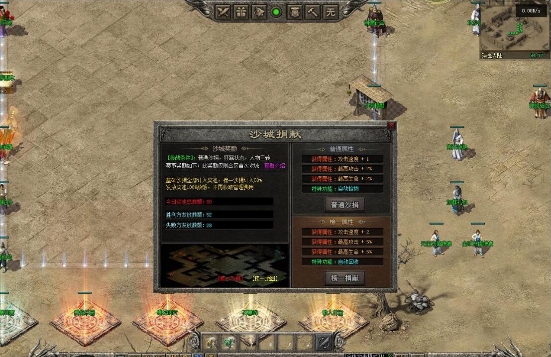 传奇游戏最新版本更新:新增智能挂机系统(入口位于综合服务内),优化所有怪物爆率(专属与材料爆率大幅提升),新增三个不爆物品,同步上线手写攻略(建议配合查询系统游玩,游戏难度适中)。增加元宝获取途径(杀怪即可获得元宝,适配后期高消耗需求),新增两个背包神器,调整金币获取规则(不同赞助等级对应不同获取量),金币回收倍率与赞助等级挂钩。修复3个剧情地图因不刷怪导致的中断问题,解决强化框不显示无法强化的故障,优化杀怪点变量及称号领取条件(一晚上可领完)。整理土城NPC布局(删除无用NPC,界面更整洁),新增GM可控真假爆率系统,优化人物初始攻速(非无限刀)。完成多处剧情地图问题修复与优化:赤沙龙城材料调整;剧情二四个NPC货币消耗、材料及概率优化(适配周服节奏);剧情三老者/尊者材料数量与成功率优化、老马猴/卖酒老头/定海神针合成修改、震天凯/穿针引线合成问题修复;云顶天宫进图条件调整,难度适当降低。