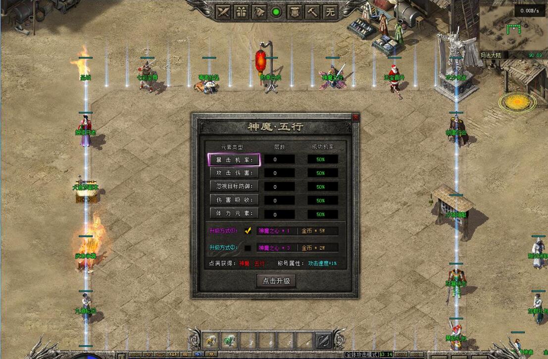 《神魔战场》是一款充满热血与激情的传奇游戏,元神系统作为核心特色玩法,拥有强大耐玩性与探索性,是散人玩家逆袭高富帅的快捷之路。游戏包含元神系统(青龙、白虎、朱雀、玄武元神,满级120级,玄武元神可学阴阳召唤召唤同步属性宝宝,材料靠打怪大量爆出自动食用)、人物神力·坐骑系统(满级坐骑倍攻+20%、爆率+40%、伤害+20%,9级带传送,灵魂宝石与元宝靠打怪)、强力元素·称号系统(满级称号攻+10%、体力+10%、魔力+10%、致命+10%、暴击抗+10%,顶级激活护体神盾,材料靠打怪),以及泰亚史诗特色玩法(幸运最高12激活刀刀最高攻击,武器准确+30,前100级经验卷打怪,后120级埋没之城副本,青铜赞助以上可紫装鉴定)。长期玩法耐玩,助玩家在神魔战场脱颖而出。