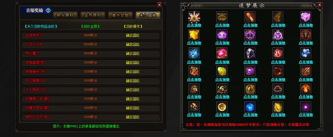传奇游戏最新版本更新:新增智能挂机系统(入口位于综合服务内),优化所有怪物爆率(专属与材料爆率大幅提升),新增三个不爆物品,同步上线手写攻略(建议配合查询系统游玩,游戏难度适中)。增加元宝获取途径(杀怪即可获得元宝,适配后期高消耗需求),新增两个背包神器,调整金币获取规则(不同赞助等级对应不同获取量),金币回收倍率与赞助等级挂钩。修复3个剧情地图因不刷怪导致的中断问题,解决强化框不显示无法强化的故障,优化杀怪点变量及称号领取条件(一晚上可领完)。整理土城NPC布局(删除无用NPC,界面更整洁),新增GM可控真假爆率系统,优化人物初始攻速(非无限刀)。完成多处剧情地图问题修复与优化:赤沙龙城材料调整;剧情二四个NPC货币消耗、材料及概率优化(适配周服节奏);剧情三老者/尊者材料数量与成功率优化、老马猴/卖酒老头/定海神针合成修改、震天凯/穿针引线合成问题修复;云顶天宫进图条件调整,难度适当降低。