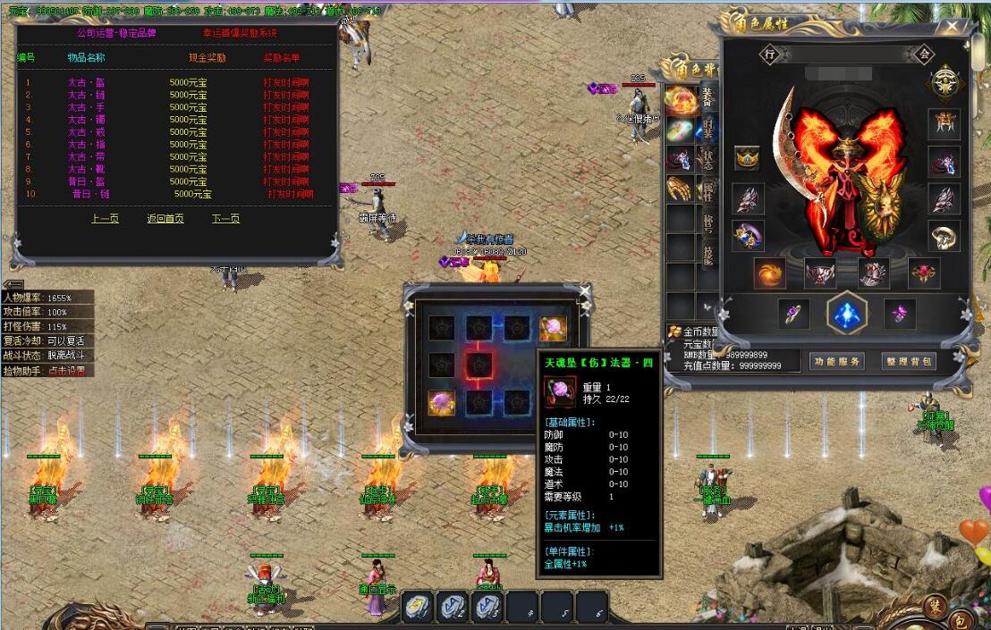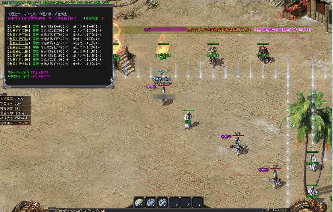 40档位:狂暴+沙捐,捐献领取世界大咖徽章,沙捐赠送5-10转材料进行转生。大咖勋章带自动拾取,沙捐带自动回收。