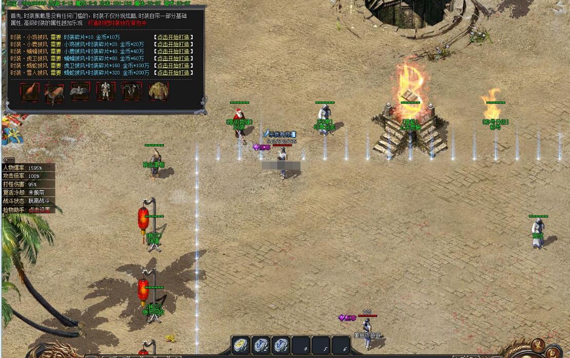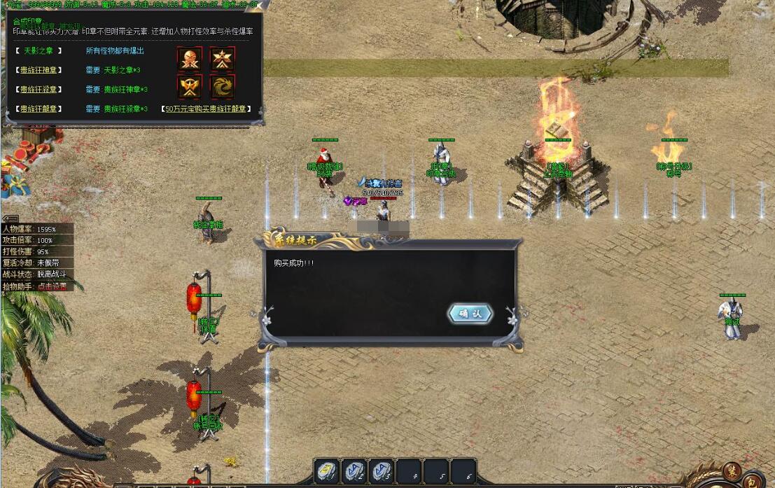 商铺购买魔戒(提升打怪伤害和爆率)和聚宝盆(增加金币产量),此两种神器起号打金必备。