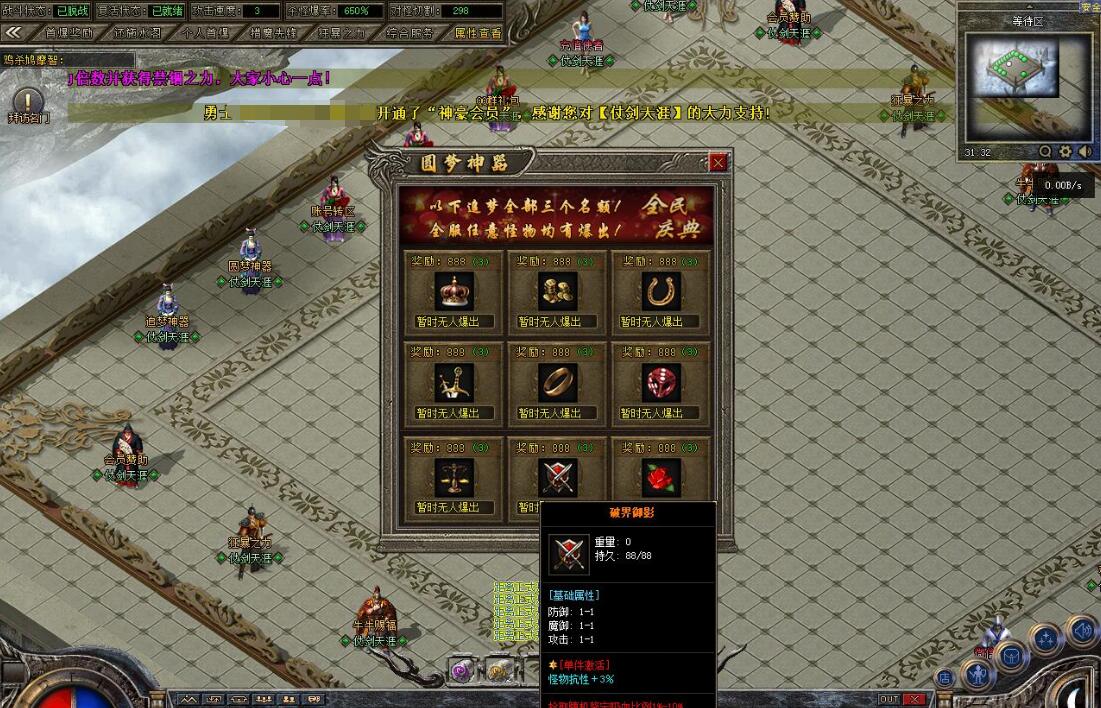 传奇游戏最新版本更新:新增智能挂机系统(入口位于综合服务内),优化所有怪物爆率(专属与材料爆率大幅提升),新增三个不爆物品,同步上线手写攻略(建议配合查询系统游玩,游戏难度适中)。增加元宝获取途径(杀怪即可获得元宝,适配后期高消耗需求),新增两个背包神器,调整金币获取规则(不同赞助等级对应不同获取量),金币回收倍率与赞助等级挂钩。修复3个剧情地图因不刷怪导致的中断问题,解决强化框不显示无法强化的故障,优化杀怪点变量及称号领取条件(一晚上可领完)。整理土城NPC布局(删除无用NPC,界面更整洁),新增GM可控真假爆率系统,优化人物初始攻速(非无限刀)。完成多处剧情地图问题修复与优化:赤沙龙城材料调整;剧情二四个NPC货币消耗、材料及概率优化(适配周服节奏);剧情三老者/尊者材料数量与成功率优化、老马猴/卖酒老头/定海神针合成修改、震天凯/穿针引线合成问题修复;云顶天宫进图条件调整,难度适当降低。