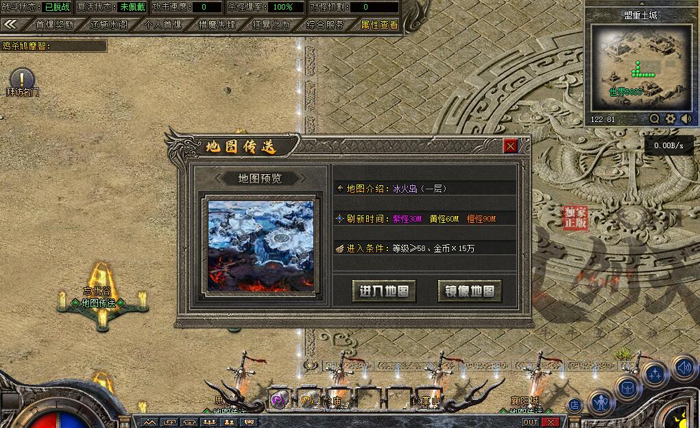 杀猫逐鹿出新村 斩妖除魔入盟重 近观绿涛汇碧海 远眺青山有苍松