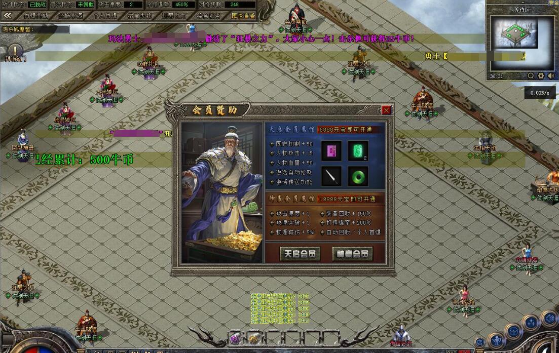 沉默降临是一款情怀单职业传奇游戏,定位公益追梦版,为长期服,装备保值,拒绝快餐模式。特色包含唯一赞助3600沉默币狂暴之力,300沉默币普通沙捐,2000沉默币神豪沙捐,3000沉默币神魔保底(保底8800沉默币)。账号档次分两档:落地全满号(狂暴3+沙捐50+赞助36+神魔88,共177元)、大哥全满号(含额外祈福20次,共353元),无隐藏消费与比例。宝宝成长:0级战兽、50级高级战兽、55级超级战兽、58级终极战兽(群攻)。开荒路线:落地矿区打白怪(狂风项链戒指)→全图圣兽→粉色装备(爪子吸血头)→渡劫选左边吸血命格→合特殊优先盾→开黄(紫色追梦效率低不建议)→开红(可卡怪或堆属性)→开人行。重要提示:十步一杀在56级震天宫三层花费888万金币获得,入口坐标97.17,称号卷轴通过活动或蓝色怪(圣兽)、恭喜发财爆出。郑重承诺爆率全开、公平公正,听取玩家意见重金酬谢,致力于良好游戏体验。沉默币充值比例1:100。