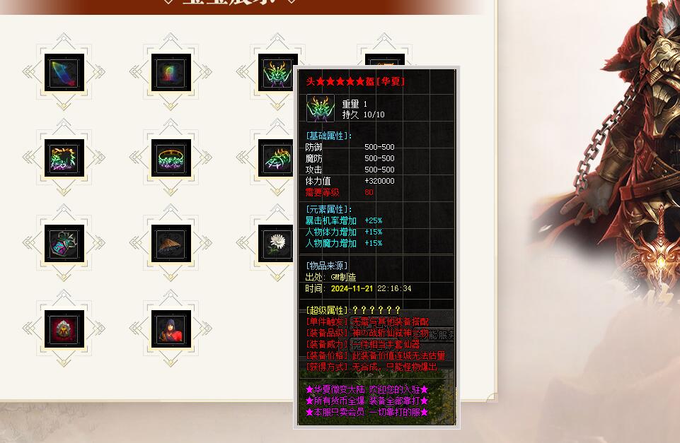剑甲首饰无任何合成,全部靠打,不控爆率,包括70套装备和1200件倍攻神器!