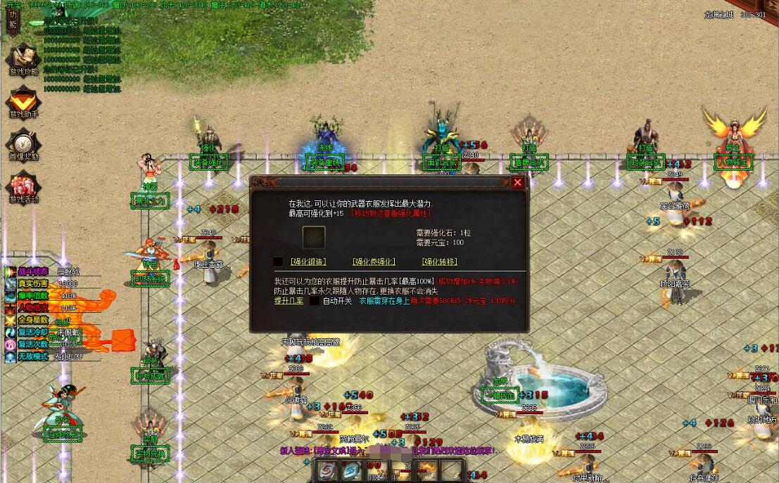 游戏助手可以开启自动吃经验宝箱,混到500级,1000点攻击就可以去遗忘之城。进入遗忘之城打小怪会爆[遗忘之城の信物],收集10个激活遗忘之城的守护称号,加爆率和真实伤害等。有回血和一两万血量后,打复古类BOSS爆率高,会掉落充值红包(打开得元宝),前期发育必杀。
