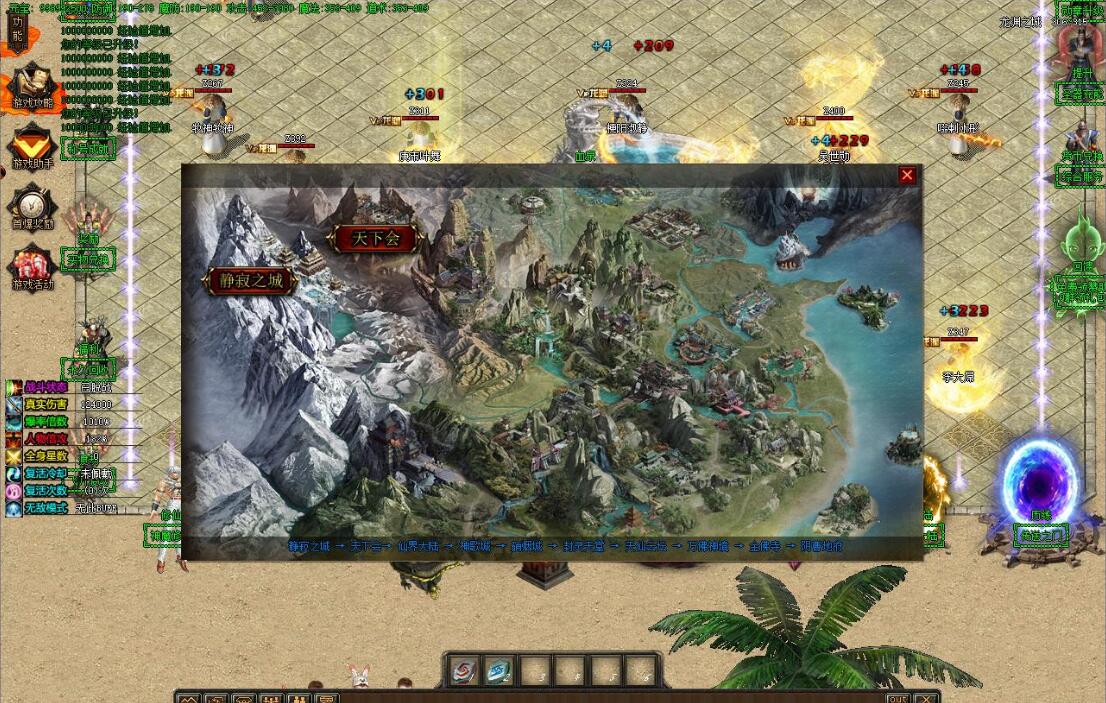 遗忘之城内有四个异次元空间,坐标打开小地图看,地上有专门光圈标注,很好找。等有了400级和6转后进入静寂之城。静寂之城怪物攻击变高,需转生或专属武器轻松发育。1转开始武器附带吸血属性,捐献玩家可无视BOSS。