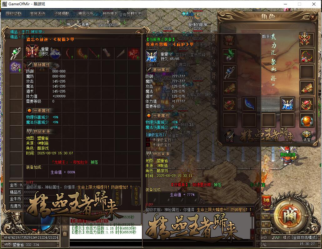 本服所有装备均可爆出,装备永久回收,永不掉价![时装]精品·开天和[时装]雷霆战甲均可半价转新区,转区请查看游戏中转区NPC。