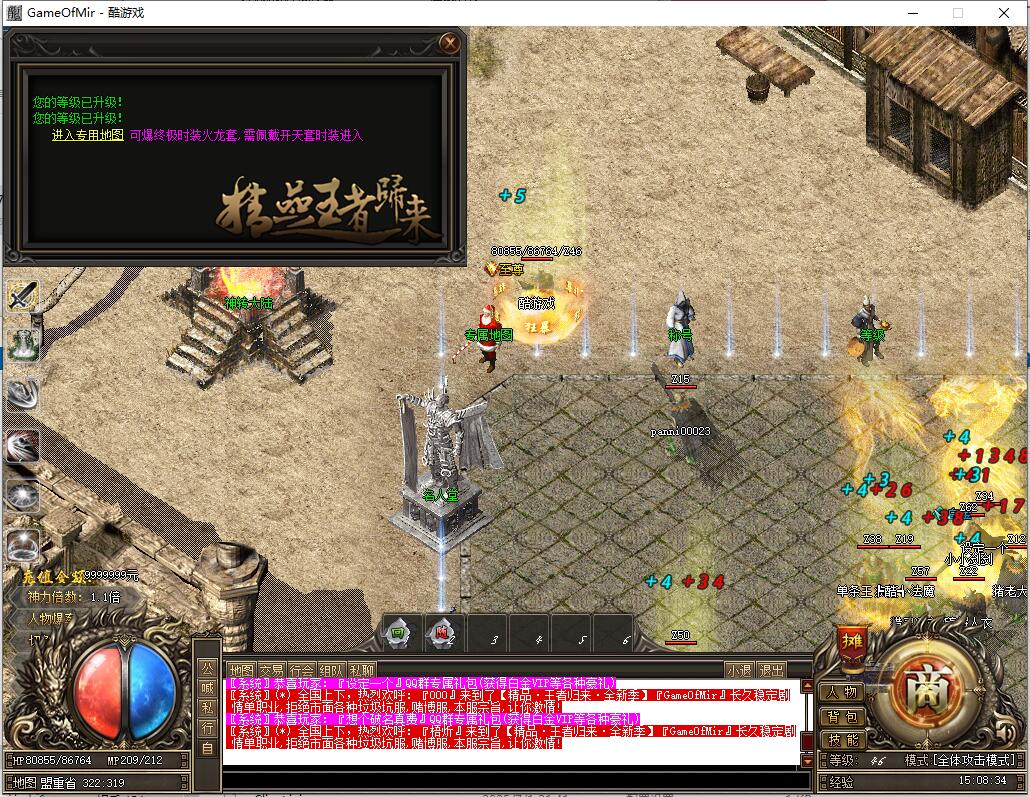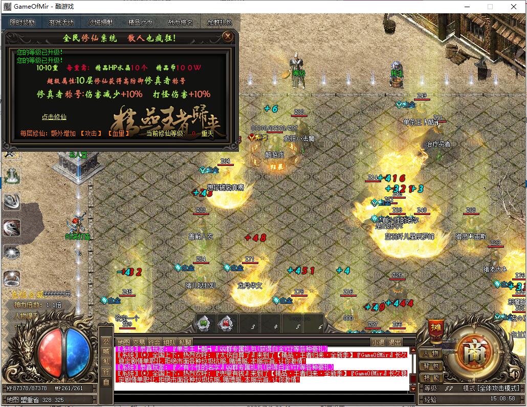散人玩家上线即可泡点至200级,然后前往各大地图打装备,进入神转大陆。地图无限制,装备狂爆,无充值地图,可领取群礼包。条件允许时开启精品之力,找时装福利BOSS击杀,各大地图均会刷新。