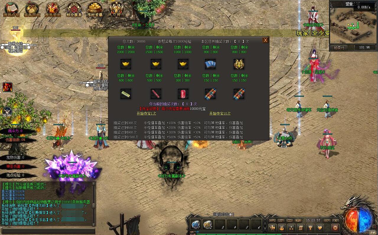 必做欢乐抽奖抽1588次加500爆率,把宠物洗的差不多直接商铺买宠物御灵丹把攻击加成、契合加成升满,生命值暂时不用