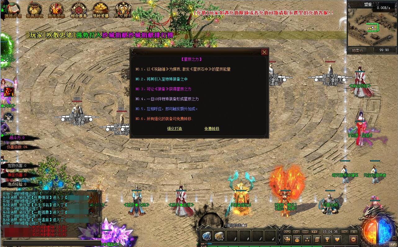 - 冰河大陆:隐藏地图→火山神殿→暗黑龙王洞→荒漠戈壁→暗黑之巅→神王栖息地→星斗森林→百花谷→冰避世草原 (爆出5转专属装备→时装专属→生肖)