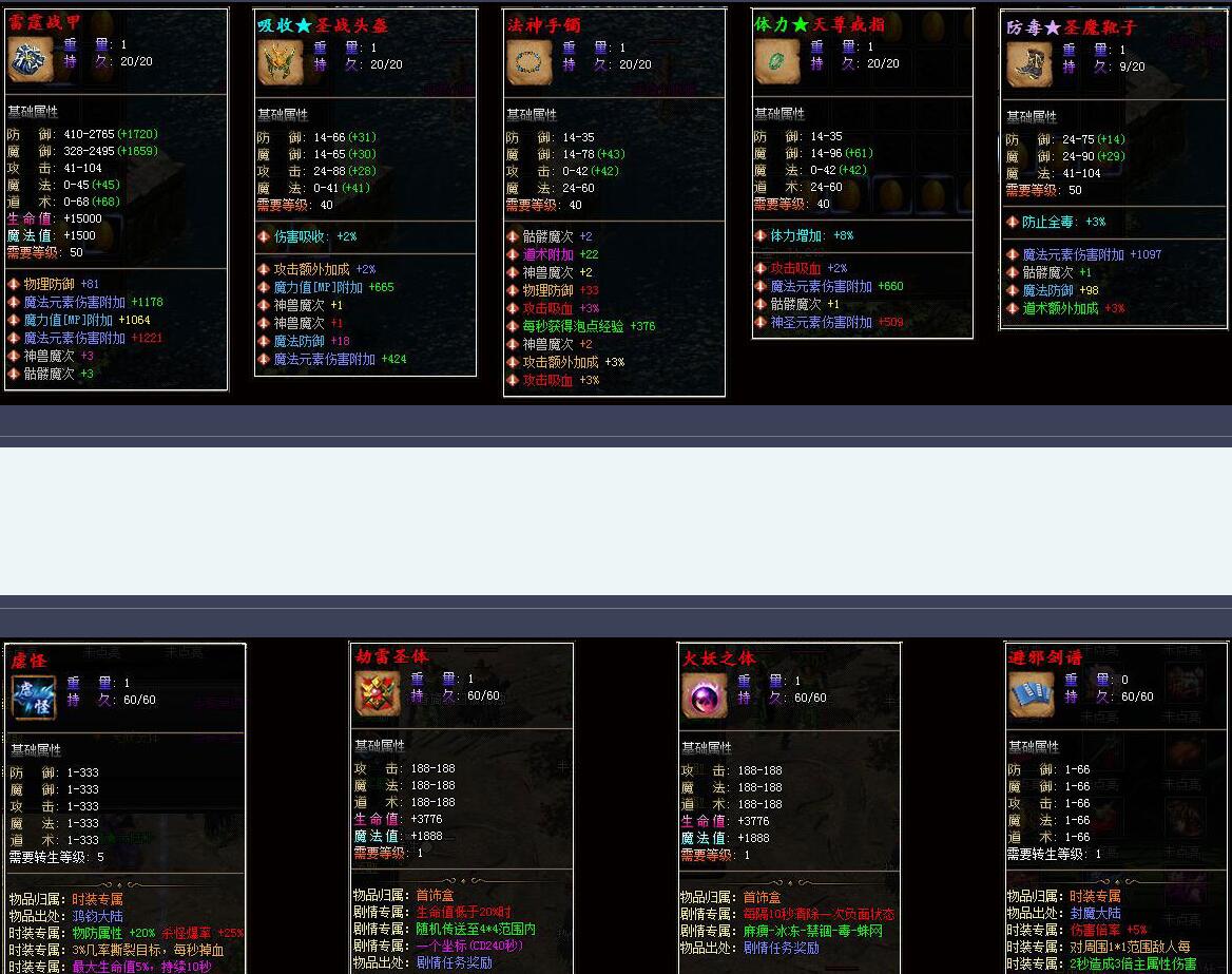 - 神隐森林:隐藏地图→魔龙→火龙→狐月→迷乱丛林 (爆出50-60级装备)