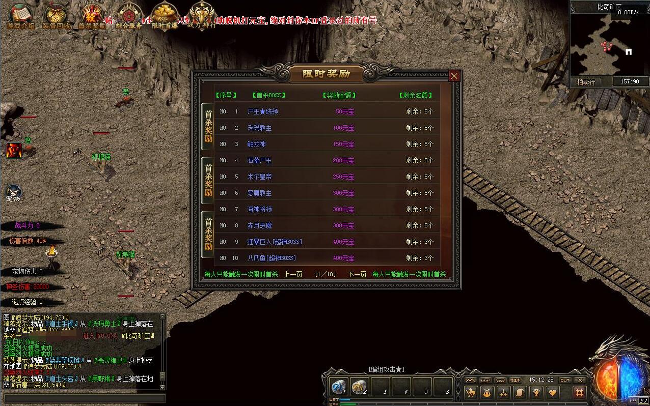 道士开局基本所有BOSS都能打,找BOSS打,有元宝就抽宠物,抽到好宠物直接起飞,之后无限打元宝