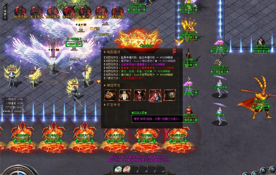全区活动:天降财宝、玉兔送宝、世界BOSS。