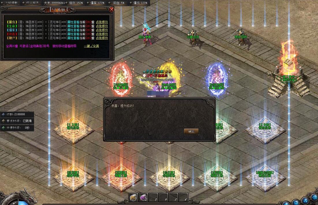 - 福利3:领取礼包活动背包神器击杀怪物可快速获得巨量元宝+稀有材料+积分点!