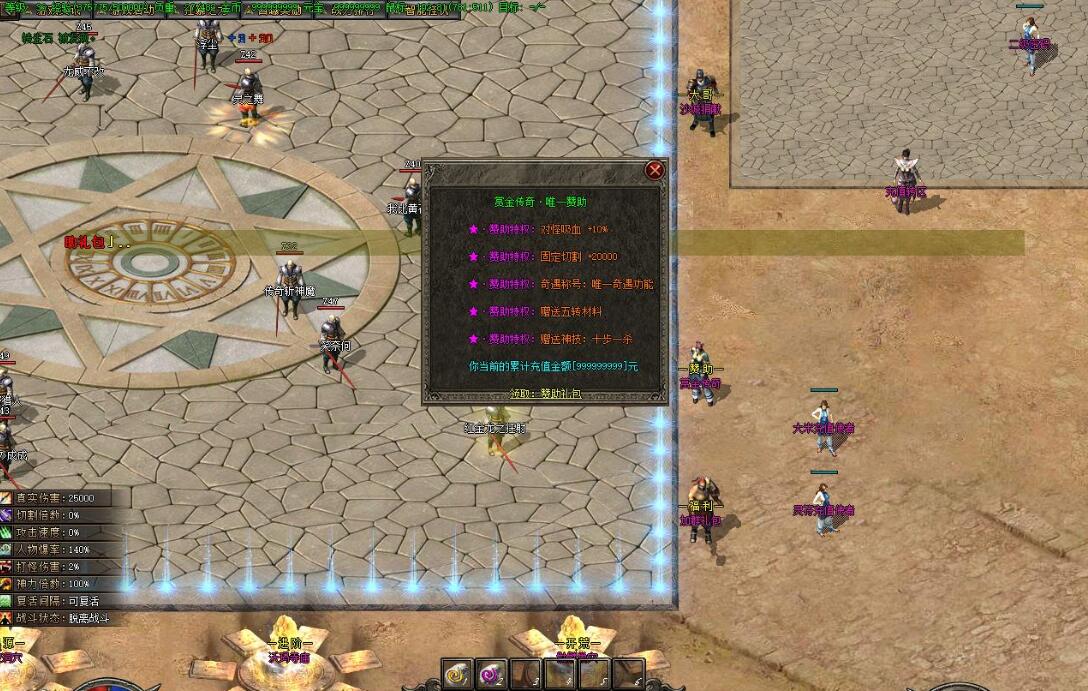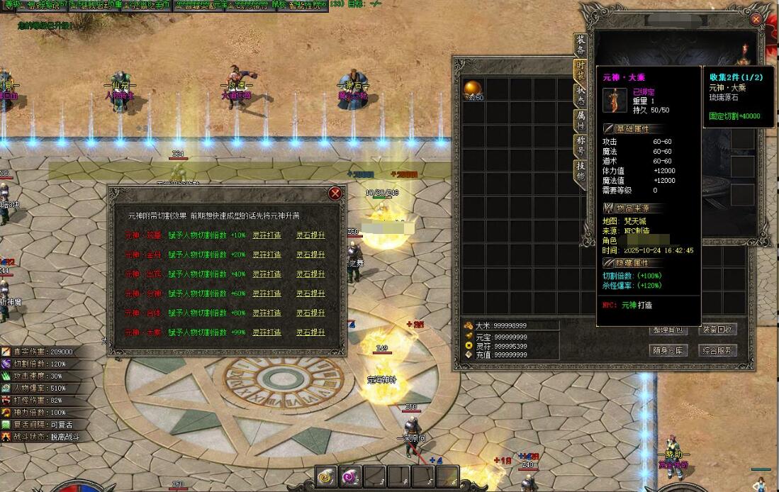 (封榜捐献) 封榜捐献需要700大米 赠送切割40000 攻速30% 爆率200% 对怪伤害60% 切割倍数20% 元宝回收+50% 自动挂机