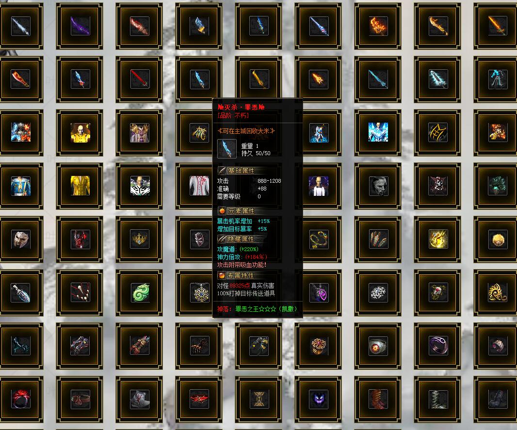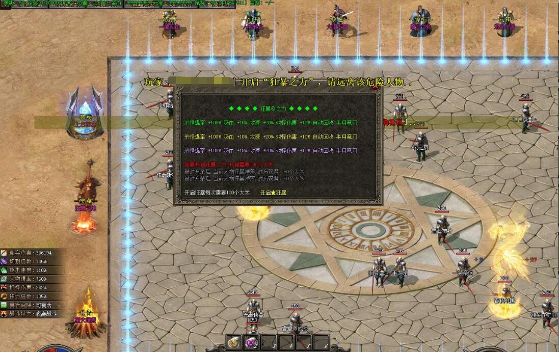 (狂暴使者) 开启需要100大米 赠送 半月弯刀 攻速20% 爆率100% 吸血10% 对怪伤害10%