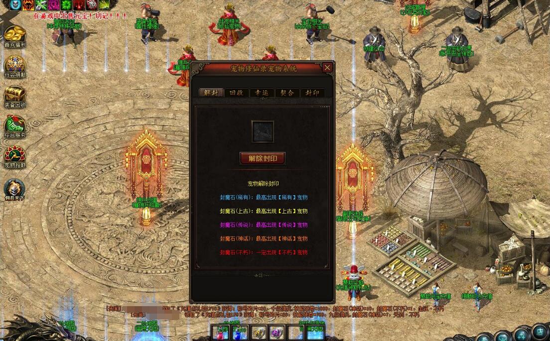 新人Q群礼包会送起步宠物,排行看群文件。未知宠物可开出全服所有宠物【稀有-上古-传说-神话-不朽级别】。1-50宠物打死100%可抓捕,商铺可获得解封石头。