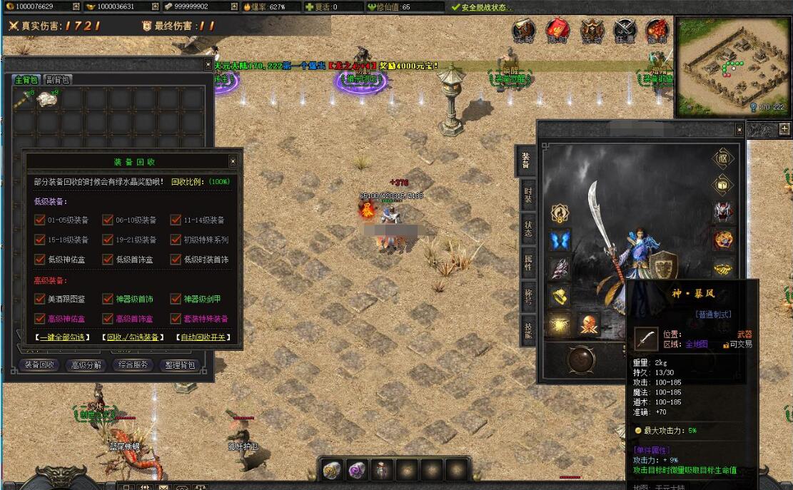 本服还原干净聊天框,无垃圾信息及回收提示,商铺不售材料全靠打怪,永久回收物品均由怪物爆出。游戏问题可QQ群联系客服完美解答,无论是否消费均用心服务,所有玩家公平对待。交易安全需通过商铺RMB点交易,提现手续费仅10%;私下交易一经查实封号并清除提现记录;禁止自动刷屏、骂人小号占安全区,违者警告或封号;严禁加速脱机外挂,发现必删永不解封。