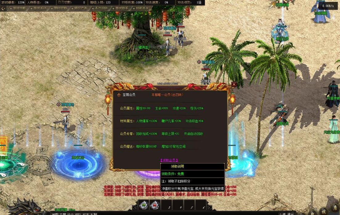 游戏特色:上线即送、自动捡取、自动回收、免费会员、自动挂机攻速拉满、打怪流畅、装备保值、冰点消费、畅爽追梦。