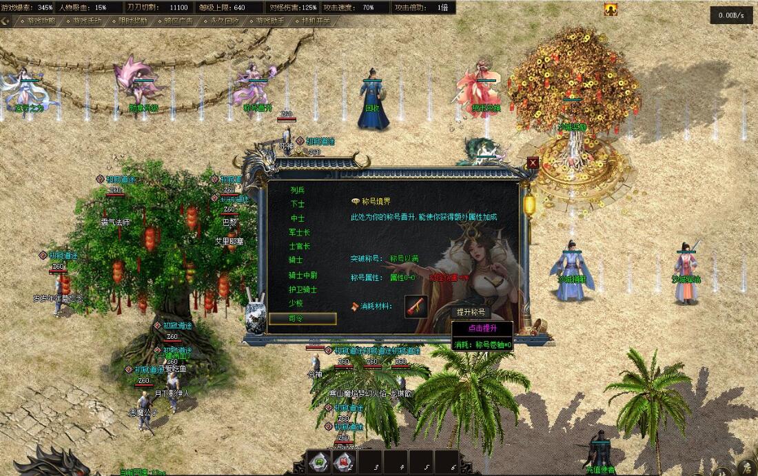 《神魔战场》是一款充满热血与激情的传奇游戏,元神系统作为核心特色玩法,拥有强大耐玩性与探索性,是散人玩家逆袭高富帅的快捷之路。游戏包含元神系统(青龙、白虎、朱雀、玄武元神,满级120级,玄武元神可学阴阳召唤召唤同步属性宝宝,材料靠打怪大量爆出自动食用)、人物神力·坐骑系统(满级坐骑倍攻+20%、爆率+40%、伤害+20%,9级带传送,灵魂宝石与元宝靠打怪)、强力元素·称号系统(满级称号攻+10%、体力+10%、魔力+10%、致命+10%、暴击抗+10%,顶级激活护体神盾,材料靠打怪),以及泰亚史诗特色玩法(幸运最高12激活刀刀最高攻击,武器准确+30,前100级经验卷打怪,后120级埋没之城副本,青铜赞助以上可紫装鉴定)。长期玩法耐玩,助玩家在神魔战场脱颖而出。