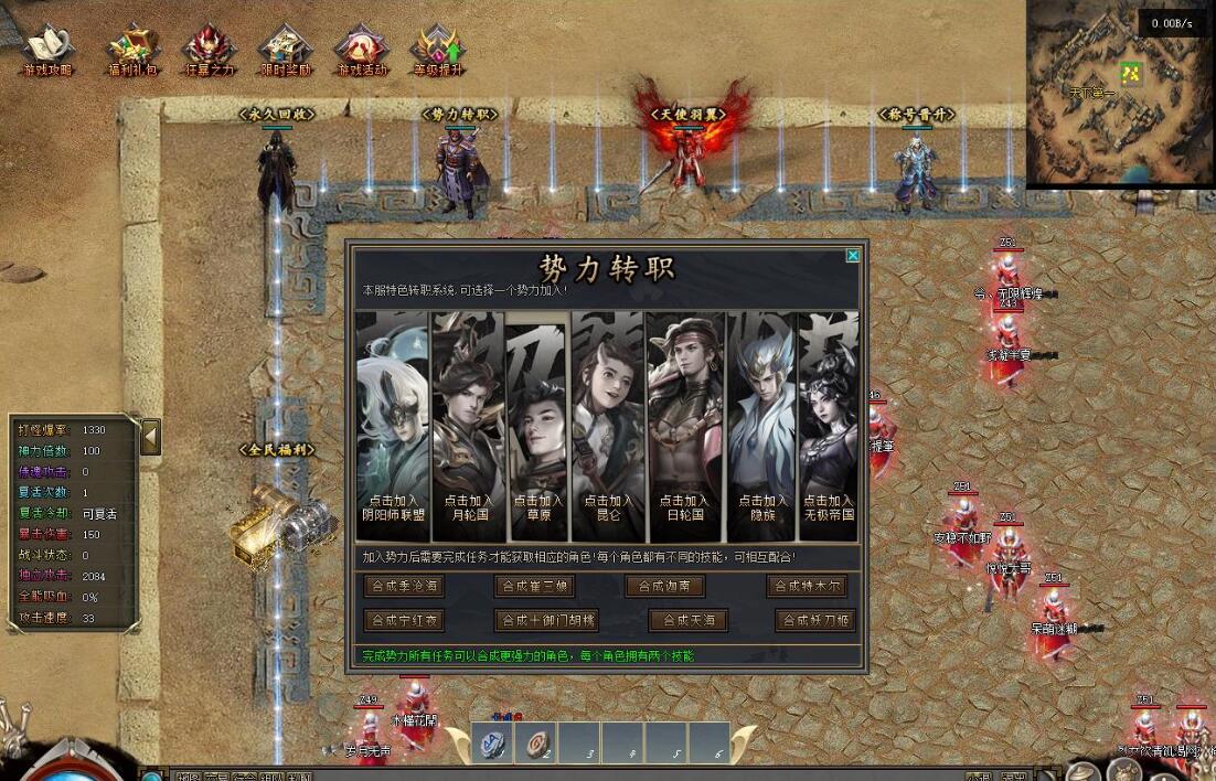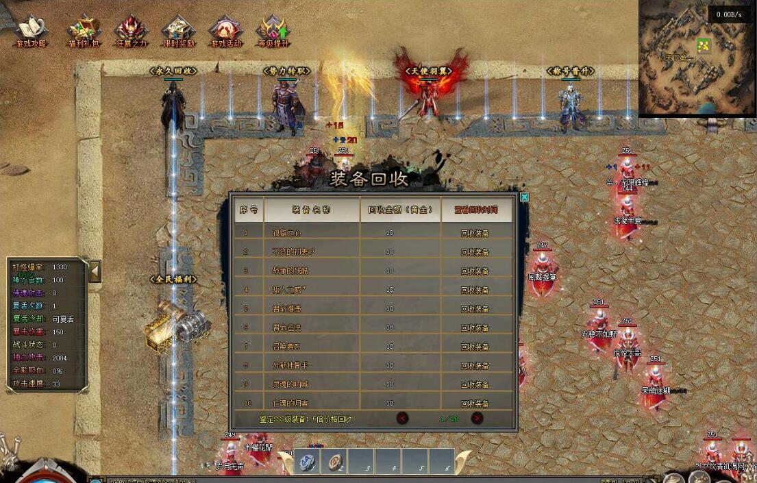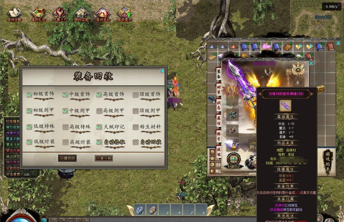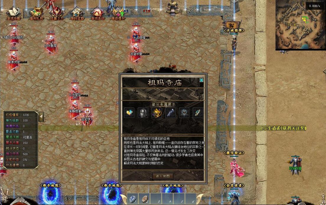 传奇游戏最新版本更新:新增智能挂机系统(入口位于综合服务内),优化所有怪物爆率(专属与材料爆率大幅提升),新增三个不爆物品,同步上线手写攻略(建议配合查询系统游玩,游戏难度适中)。增加元宝获取途径(杀怪即可获得元宝,适配后期高消耗需求),新增两个背包神器,调整金币获取规则(不同赞助等级对应不同获取量),金币回收倍率与赞助等级挂钩。修复3个剧情地图因不刷怪导致的中断问题,解决强化框不显示无法强化的故障,优化杀怪点变量及称号领取条件(一晚上可领完)。整理土城NPC布局(删除无用NPC,界面更整洁),新增GM可控真假爆率系统,优化人物初始攻速(非无限刀)。完成多处剧情地图问题修复与优化:赤沙龙城材料调整;剧情二四个NPC货币消耗、材料及概率优化(适配周服节奏);剧情三老者/尊者材料数量与成功率优化、老马猴/卖酒老头/定海神针合成修改、震天凯/穿针引线合成问题修复;云顶天宫进图条件调整,难度适当降低。