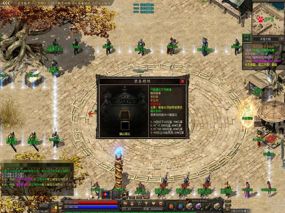 传奇游戏最新版本更新:新增智能挂机系统(入口位于综合服务内),优化所有怪物爆率(专属与材料爆率大幅提升),新增三个不爆物品,同步上线手写攻略(建议配合查询系统游玩,游戏难度适中)。增加元宝获取途径(杀怪即可获得元宝,适配后期高消耗需求),新增两个背包神器,调整金币获取规则(不同赞助等级对应不同获取量),金币回收倍率与赞助等级挂钩。修复3个剧情地图因不刷怪导致的中断问题,解决强化框不显示无法强化的故障,优化杀怪点变量及称号领取条件(一晚上可领完)。整理土城NPC布局(删除无用NPC,界面更整洁),新增GM可控真假爆率系统,优化人物初始攻速(非无限刀)。完成多处剧情地图问题修复与优化:赤沙龙城材料调整;剧情二四个NPC货币消耗、材料及概率优化(适配周服节奏);剧情三老者/尊者材料数量与成功率优化、老马猴/卖酒老头/定海神针合成修改、震天凯/穿针引线合成问题修复;云顶天宫进图条件调整,难度适当降低。