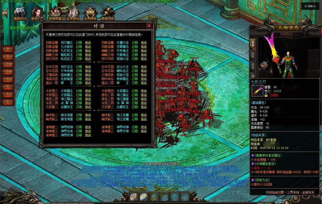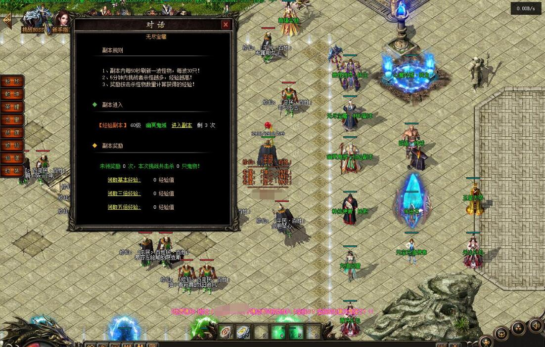传奇游戏最新版本更新:新增智能挂机系统(入口位于综合服务内),优化所有怪物爆率(专属与材料爆率大幅提升),新增三个不爆物品,同步上线手写攻略(建议配合查询系统游玩,游戏难度适中)。增加元宝获取途径(杀怪即可获得元宝,适配后期高消耗需求),新增两个背包神器,调整金币获取规则(不同赞助等级对应不同获取量),金币回收倍率与赞助等级挂钩。修复3个剧情地图因不刷怪导致的中断问题,解决强化框不显示无法强化的故障,优化杀怪点变量及称号领取条件(一晚上可领完)。整理土城NPC布局(删除无用NPC,界面更整洁),新增GM可控真假爆率系统,优化人物初始攻速(非无限刀)。完成多处剧情地图问题修复与优化:赤沙龙城材料调整;剧情二四个NPC货币消耗、材料及概率优化(适配周服节奏);剧情三老者/尊者材料数量与成功率优化、老马猴/卖酒老头/定海神针合成修改、震天凯/穿针引线合成问题修复;云顶天宫进图条件调整,难度适当降低。