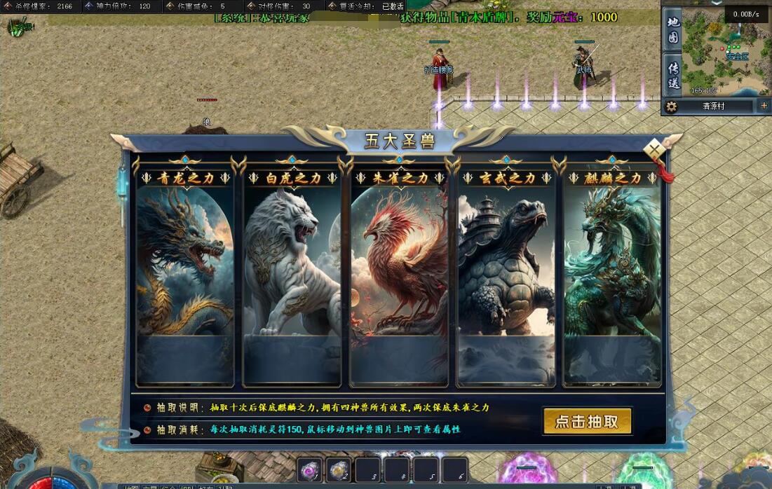 杀猫逐鹿出新村 斩妖除魔入盟重 近观绿涛汇碧海 远眺青山有苍松