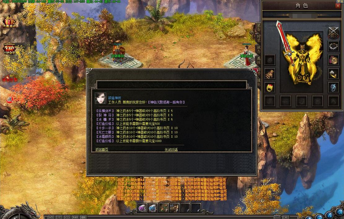 天降财神打金蛋活动,会出大量材料与大量金币。每天三次,分别是:16:00,19:50,22:40。不容错过哦!!!